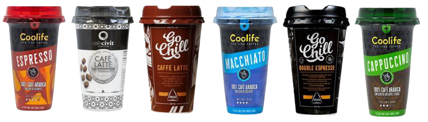 Nuestros vasos Ready to Drink son la solución para el consumidor moderno. Podemos usar nuestras recetas propias o las recetas del cliente. Para el producto estrella ´Café Frío´ en varios sabores como Cappuccino, Latte, Espresso, Caramel Macchiato… O para otras bebidas como Té Frío y bebidas vegetales (avena, almendra, soja, arroz…)